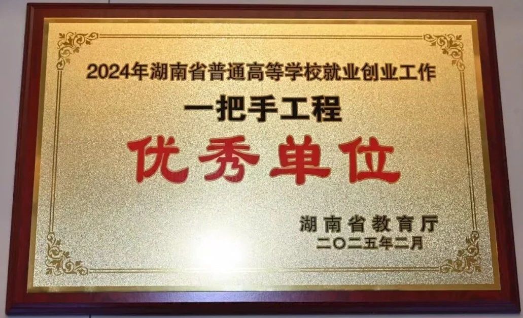 2025年1月,学校获评2024年湖南省普通高等学校就业创业工作“一把手工程”优秀单位