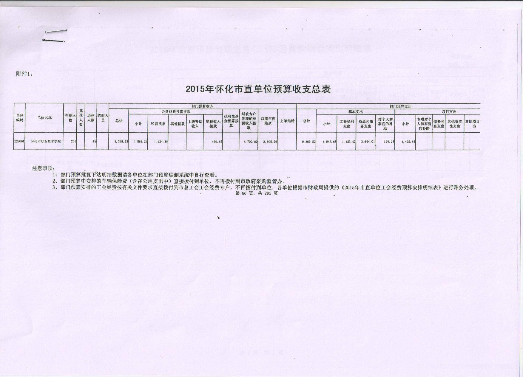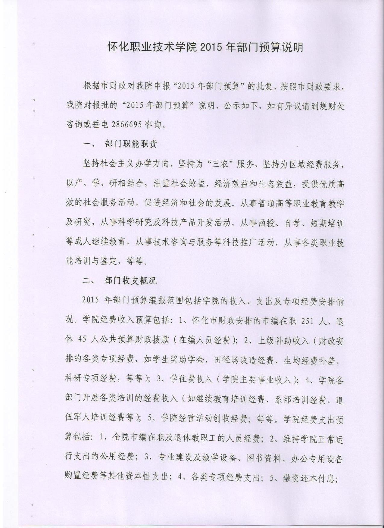 怀化职业技术学院2015年部门预算说明