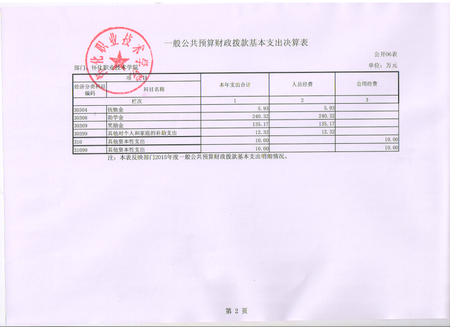 怀化职业技术学院2015年度部门决算公开说明